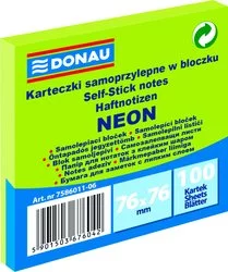 Bloczek Samoprzylepny Donau 76X76mm 1X100 Kart. Neon Zielony