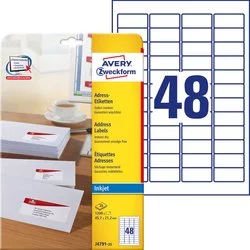 Samoprzylepne minietykiety adresowe Avery 45.7x21.2 48/A4 A'25 białe No.J4791-25