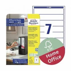 Etykiety na Segregatory Usuwalne Avery Office&Home 38x192 7/A4 A'10 Białe No.L4760REV-10