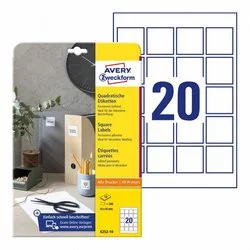 Etykiety Samop. Avery Kwadratowe 45x45 20/A4 Trwałe Białe No.6252-10