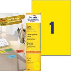 Etykiety Samop. Avery 210x297 1/A4 A'100 Żółte No.3473