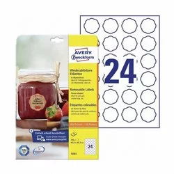 Etykiety na Butelki Ośmiokątne Usuwalne Avery 40,8x40,3 24/A4 A'10 Białe No.5082