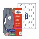 Usuwalne Samoprzylepne Identyfikatory Okrągłe Jedwabne Avery śr.65 8/A4 A'20 Białe No.L4881-20