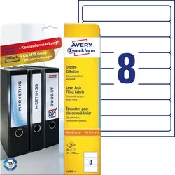 Etykiety Na Segregator Avery 34x192 10/A4 A'8 Białe No.L6060-10