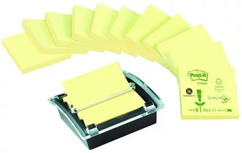 Bloczki Ekologiczne Post-It Z-Notes (C2014Y12-1) 76X76Mm 12X100 Kart. Żółte + Podajnik Gratis