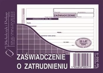 Zaświadczenie o Zatrudnieniu A6 Oryg.+1k Poziom 502-5 /MiP