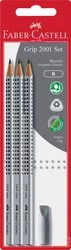 Grip 2001 Set Srebrny 3X Ołówek B + Gumka Nakładka Blister Faber-Castell