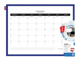 Tablica Planer Memobe, Miesięczny, Nadruk W Kolorze Czarnym, Rama Drewniana Lakierowana Granatowa, 60X40 Cm