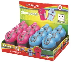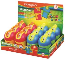 Temperówka Keyroad Color Mate Plastikowa Podwójna Z Pojemnikiem Ostrzenie W Szpic Pakowane Na Displayu Mix Kolorów