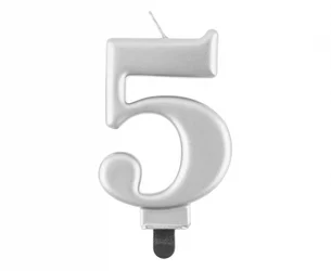 Świeczka B&C cyferka 5, metalik srebrna, 8,0 cm /GoDan