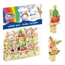 Ozdoby drewniane FIORELLO GR-WD699 spinacz Mikołaj/Choinka BN, 10 szt.