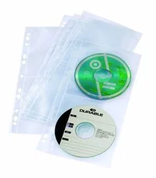 Kieszeń na 2 CD/DVD do Segregatorów Ochronna Wyściółka PP A4 10szt. Przezroczysta /Durable 520319