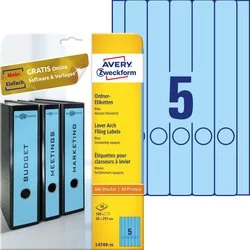 Etykiety do segregatora Avery 38x297 5/A4 A'20 Niebieskie No.L4749-20
