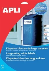 Etykiety Poliestrowe Apli 105X148mm Prostokątne Białe 20 Ark.