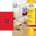 Etykiety Neonowe Usuwalne Okrągłe Avery śr. 63,5mm 12/A4 A'25 Czerwone No.L7670R-25