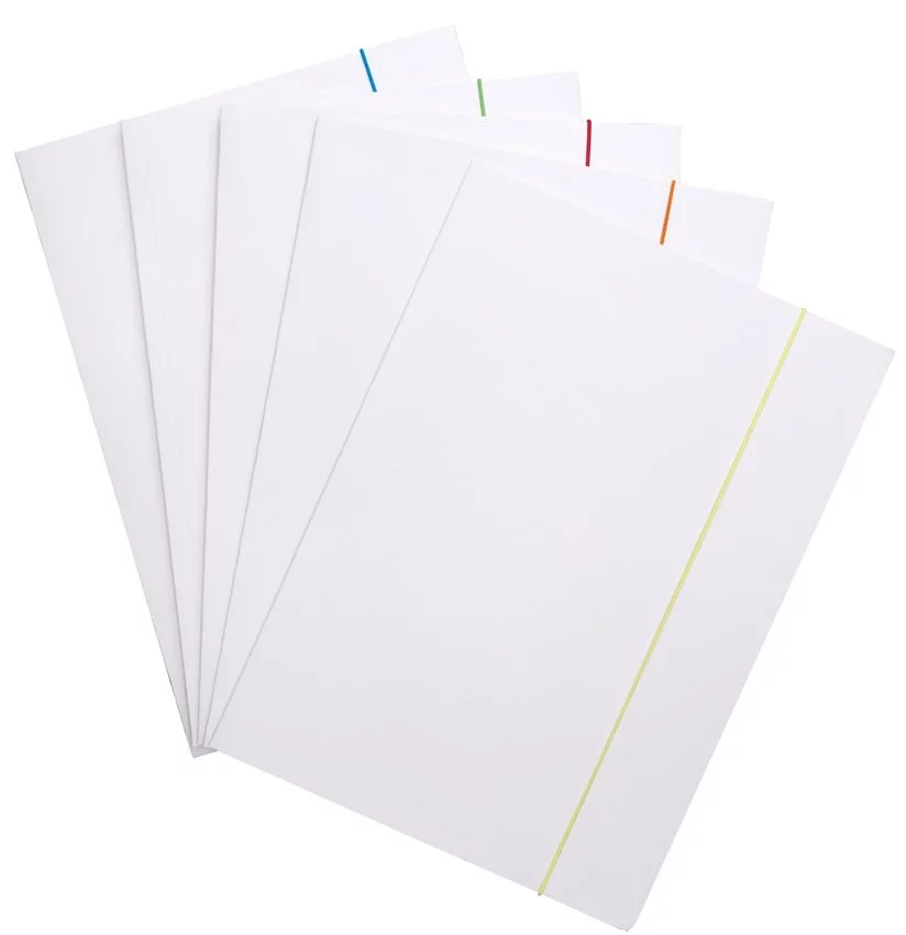 Teczka z gumką OFFICE PRODUCTS, karton, A4, 300gsm, 3-skrz., gumka mix kolorów, biała — Teczka z gumką wykonana z kartonu o gramaturze 300gsm zamykana za pomocą gumki wzdłuż dłuższego boku gumka mix kolorów