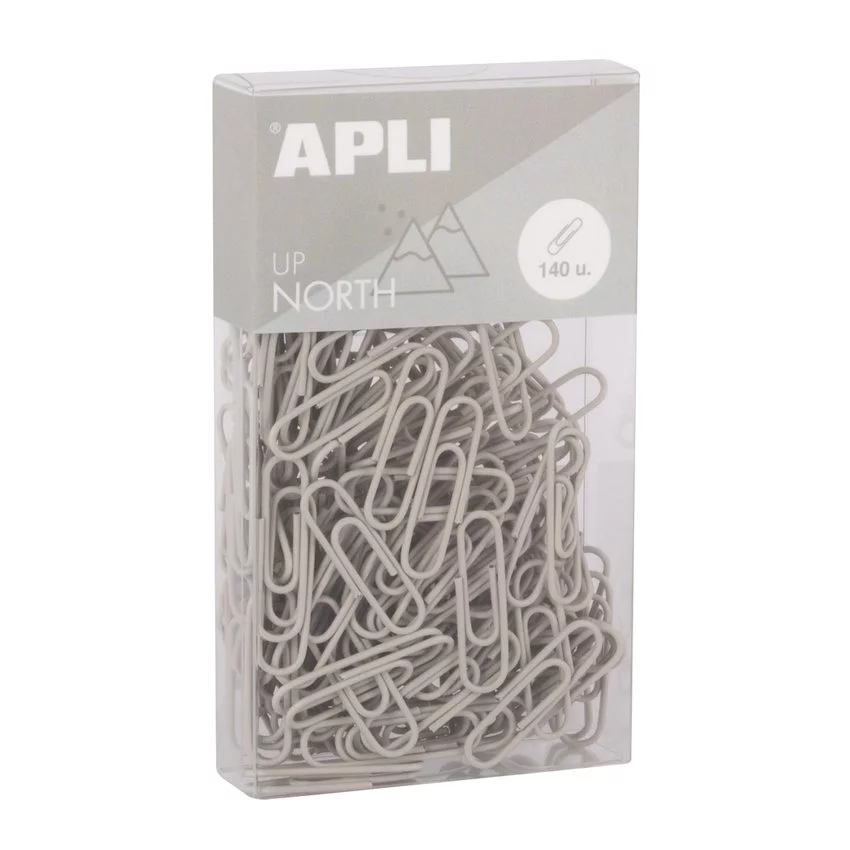 Spinacze okrągłe APLI Up North, 28mm, 140szt., pudełko z zawieszką, szare — Metalowe spinacze w plastikowym pudełku z eurozawieszką idealne do dodania odrobiny koloru przy organizacji dokumentów