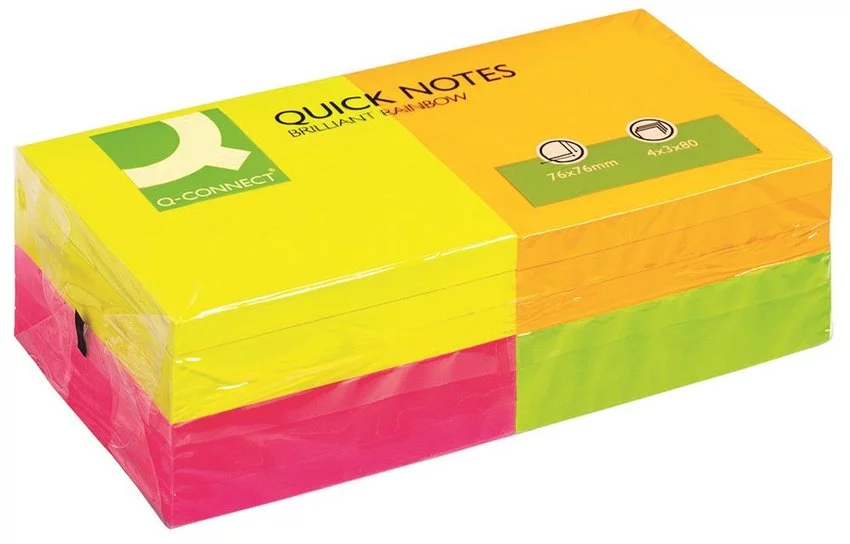 Bloczek Samoprzylepny Q-Connect Rainbow 76X76mm 4X3X80 Kart. Neon Mix Kolorów