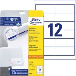 - Etykiety samoprzylepne, uniwersalne Avery Zweckform QuickPeel 6123 w kolorze białym. Łatwe w przyklejaniu i odklejaniu. Gwarancja trwałego, odpornego na ścieranie druku. Do zastosowania w drukarkach laserowych oraz kopiarkach.