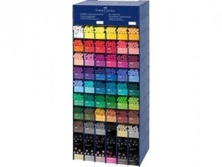 Kredki Goldfaber FABER-CASTELL w displayu. 576 szt. pojedynczych kredek Goldfaber i 144 szt. ołówków grafitowych.