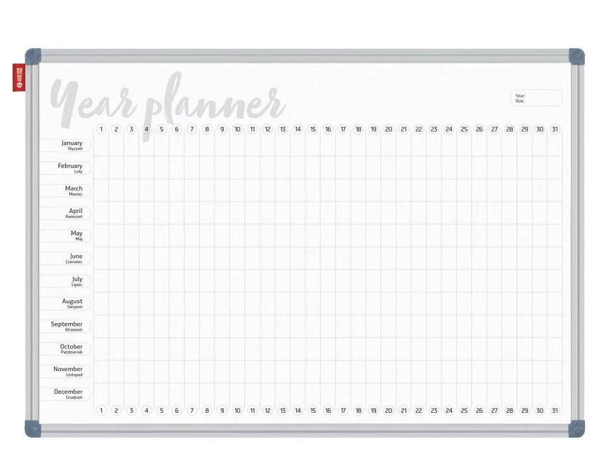 Tablica Planer Memobe, Roczny, Nadruk W Kolorze Czarnym, Rama Aluminiowa Classic, Model 8, 150X100 Cm