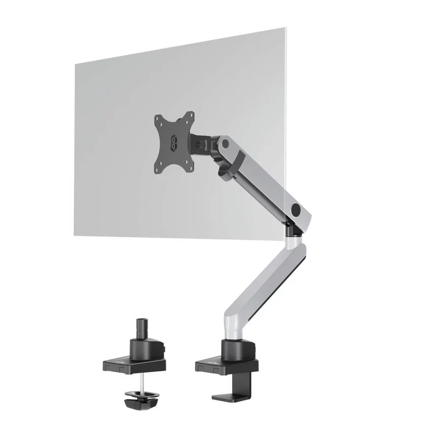 Uchwyt na 1 monitor na biurko z wieloma opcjami montażu za pomocą tulei stołowej i zacisku stołowego.