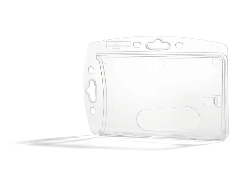 Uchwyt na karty identyfikacyjne wykonany z odpornego na uszkodzenia poliwęglanu