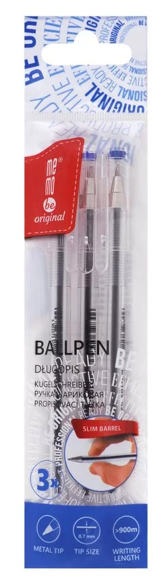 Długopis Biurowy 0,7Mm Memobe Niebieski Etui 3 Szt.