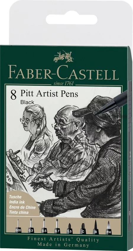 Pitt Artist Pen Black Końcówki Xxs, S, F, M, B, C, 1.5, Fh 8 Szt. Etui Faber-Castell