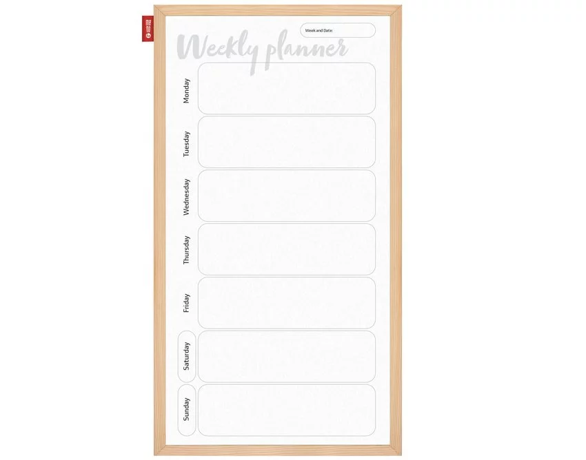 Tablica Planer Memobe, Tygodniowy, Nadruk W Kolorze Czarnym, En, Rama Drewniana, 30X60 Cm