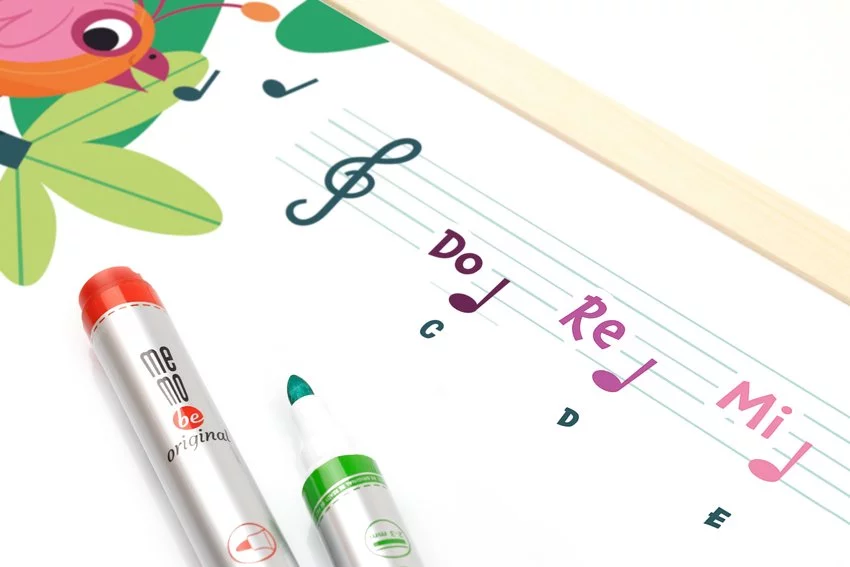 Tablica Edukacyjna Memobe, Whiteboardgame: Music Adventure!, Nadruk Wesołe Nutki Z Ptaszkami, Rama Drewniana, 60X40 Cm