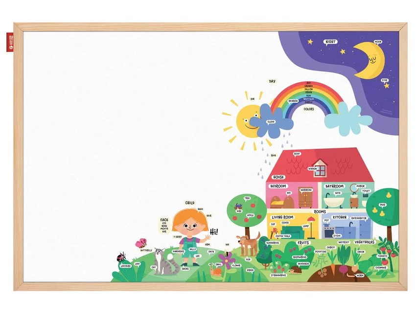 Tablica Edukacyjna Memobe, Whiteboardgame: English Adventure!, Nadruk Nauka J. Angielskiego, Rama Drewniana, 60X40 Cm