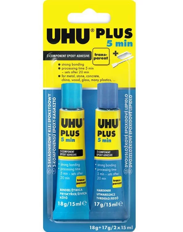 Klej Żywiczno-Epoksydowy UHU Plus 2x15ml – Krystalicznie Czysta Naprawa dla Różnych Materiałów