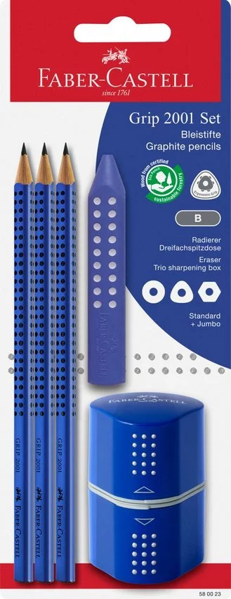 Zestaw Grip 2001 B 3Xołówek+Gumka+ Temperówka Trio Niebieski Faber-Castell