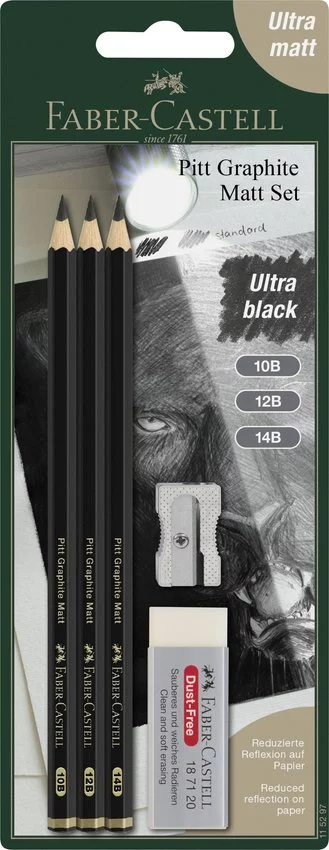 Pitt Graphite Matt Zestaw Na Blistrze 3 Ołówki 10B, 12B, 14B + Gumka + Temperówka Faber-Castell