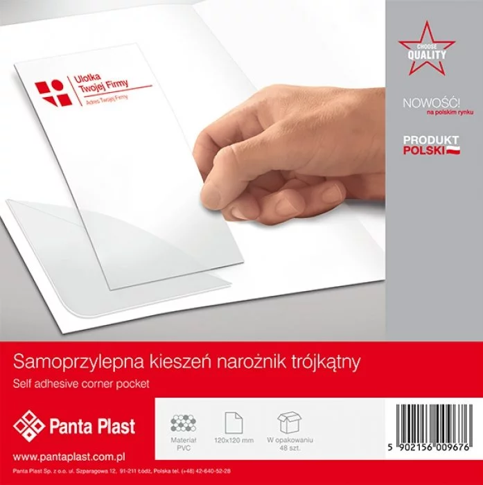 Kieszeń samoprzylepna, narożnik trójkątny PVC 120 x 120 mm x 10 szt