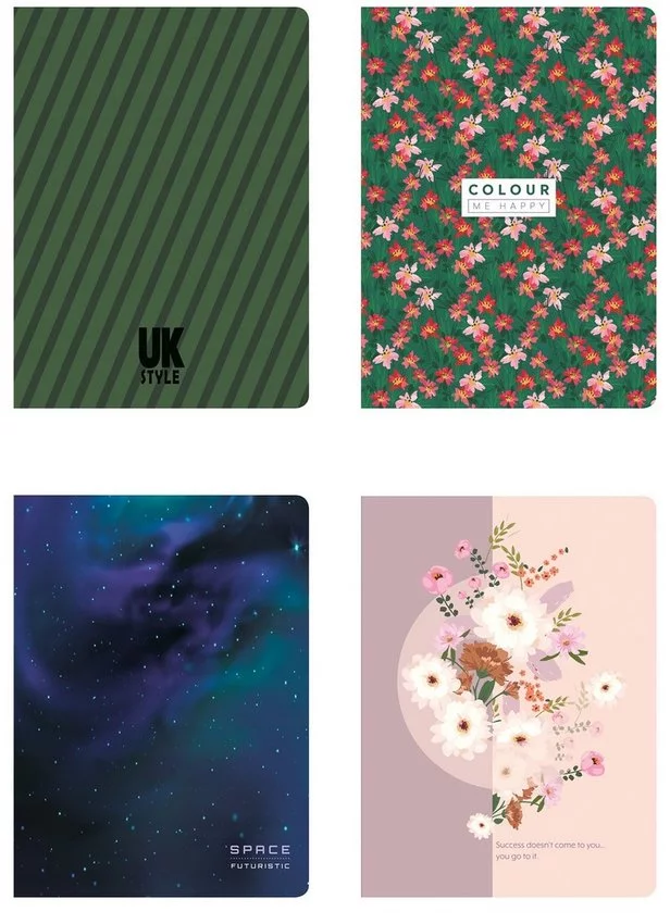 - zeszyt z miękką okładką, lakier UV