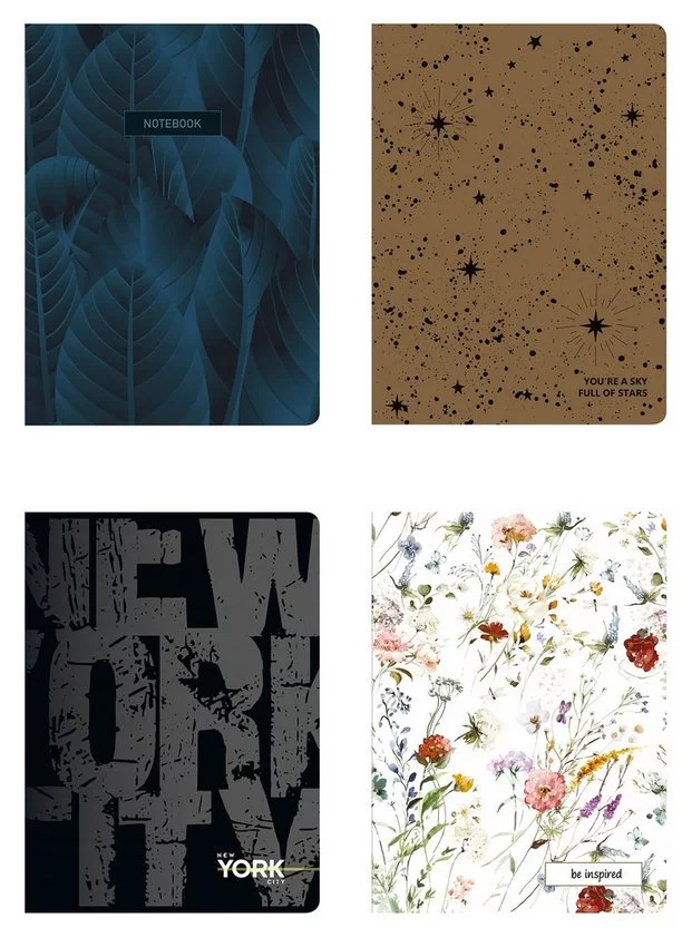 - zeszyt z miękką okładką, lakier UV