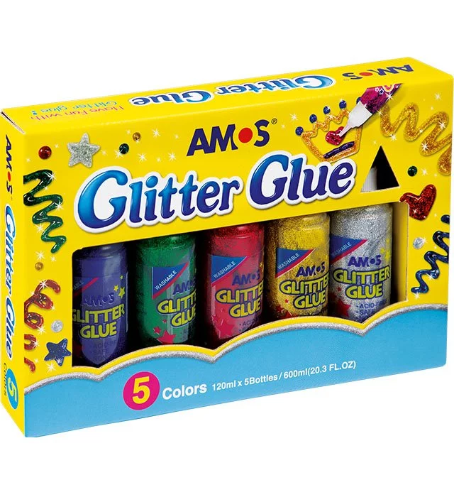 Klej z brokatem AMOS GCL120P5 – 120ml x 5 kolorów