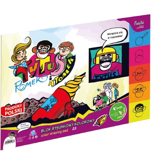Blok rysunkowy kolorowy Fiorello A3/16 kartek Tytus, Romek i A”Tomek