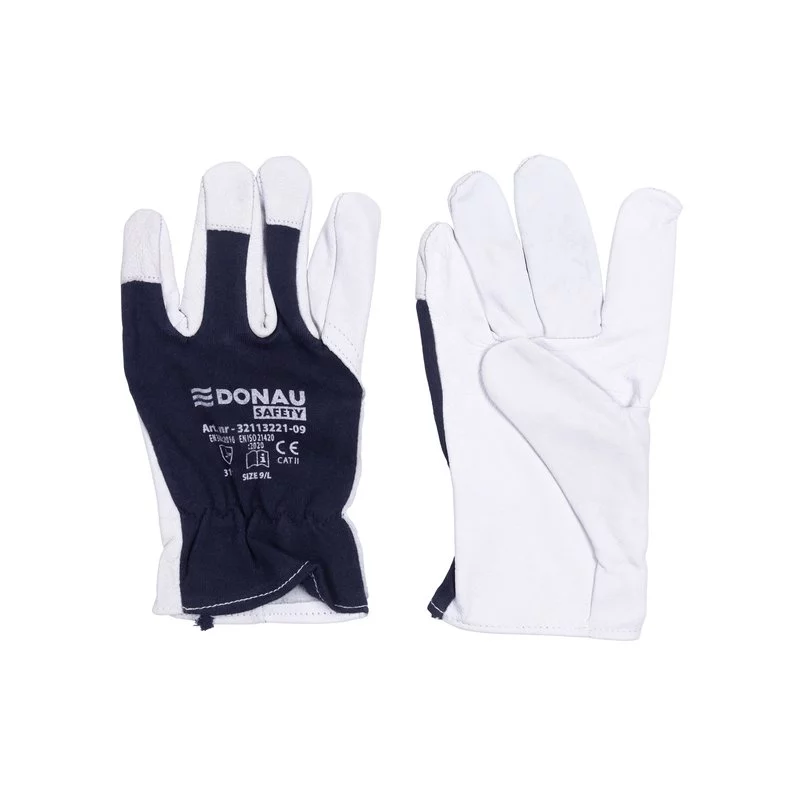Rękawice Robocze Donau Safety Skóra Kozia Po Stronie Dłoni Ściągacz Rozm. 9/L Biało-Granatowe /DONAU SAFETY