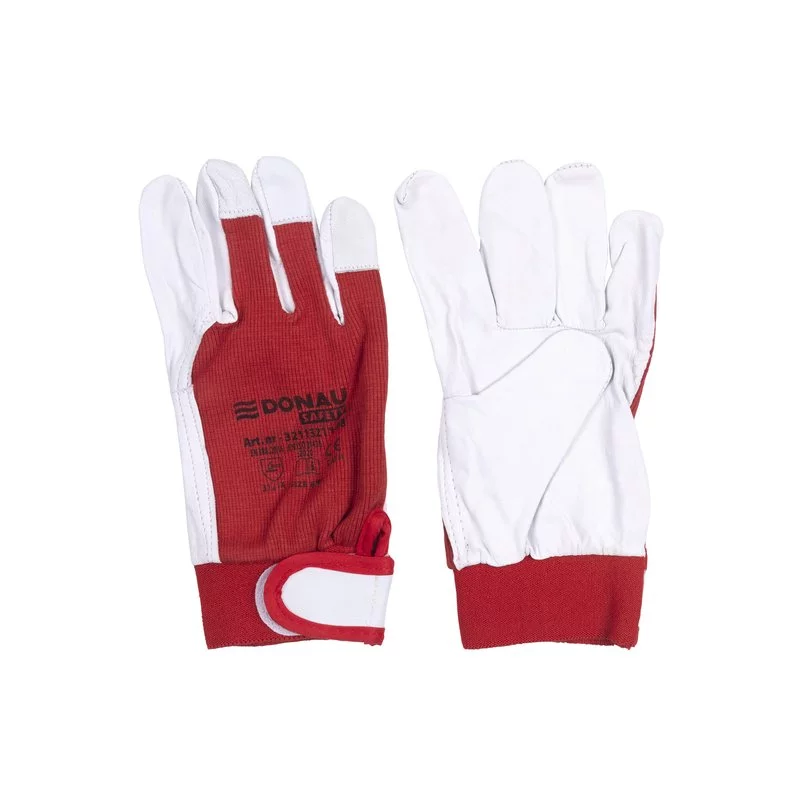 Rękawice Robocze Donau Safety Skóra Kozia Po Stronie Dłoni Rzep Rozm. 8/M Biało-Czerwone /DONAU SAFETY
