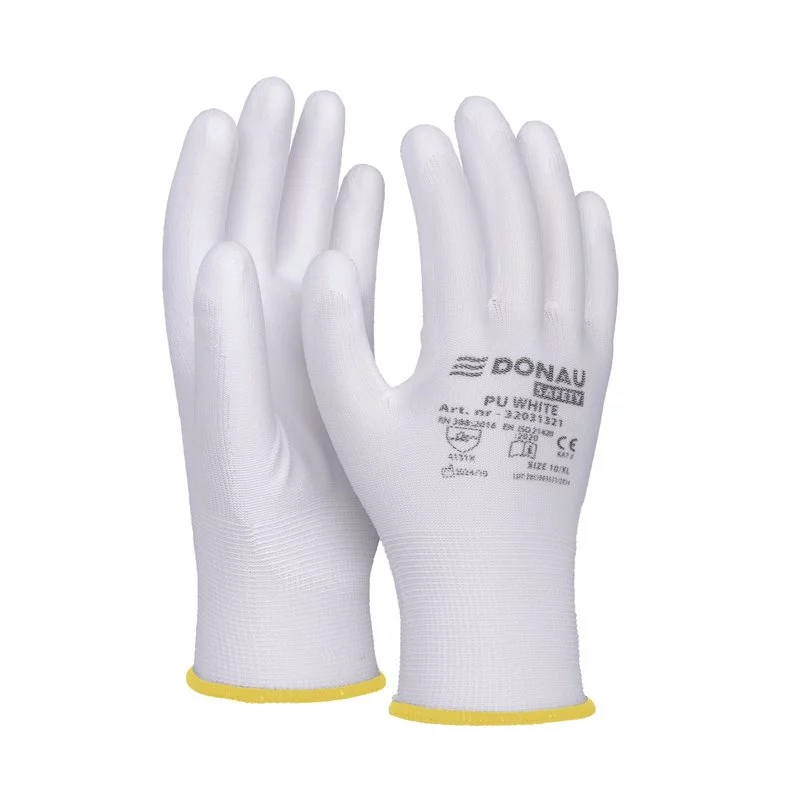 Rękawice Ochronne Donau Safety PU White Kat. II, Rozmiar 8 – Profesjonalna Ochrona i Precyzja w Białym Wydaniu