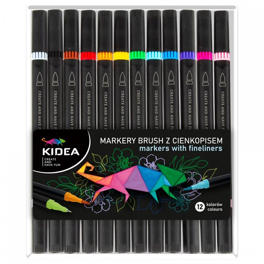 Pisaki Pędzelkowe + Cienkopisy 12kol Dwustronne /Kidea