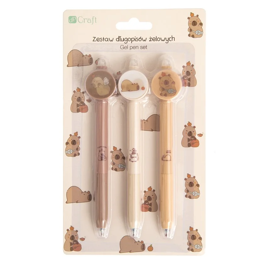 Długopisy Żelowe Wymazywalne 3szt. Kapibara /DpCraft