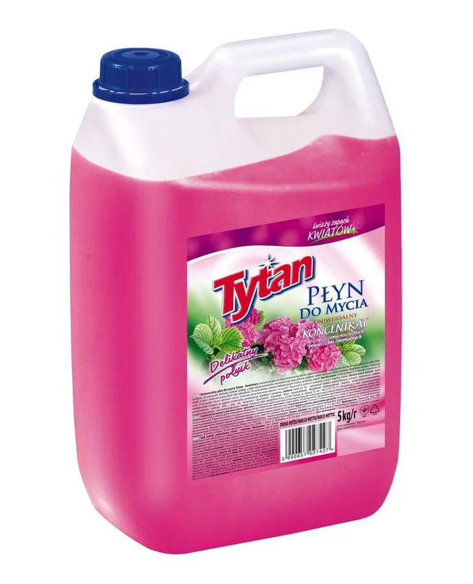 Uniwersalny płyn do mycia Tytan wzbogacony jest mleczkami do czyszczenia, dzięki czemu monotonne sprzątanie zamieni się w przyjemną chwilę. Jego precyzyjność wynika z staranie dobranych składników, a w połączeniu ze świeżym zapachem tworzy skuteczny płyn do zmywania powierzchni a także radzi sobie ze sprzętem RTV. Jego zadaniem jest radzić sobie z myciem podłóg, glazury, kuchenek, zlewozmywaków, umywalek i innych powierzchni zmywalnych, wcześniejsze problemy z brudem znikną, gdy pojawia się Tytan!