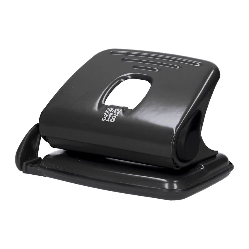 Dziurkacz biurowy SAX318 to propozycja dla osób, które potrzebują małego dziurkacza, który sprawdzi się zarówno w domu, szkole jak i małym biurze. Model 318 firmy SAX wykonany jest w całości z metalu co sprawia, iż jest solidny i bardzo wytrzymały. Dodatkowo dziurkacz posiada ogranicznik formatu a jego zdolność dziurkowania to do 15 kartek papieru jednocześnie. Producent daje na dziurkacz 10 lat gwarancji.
