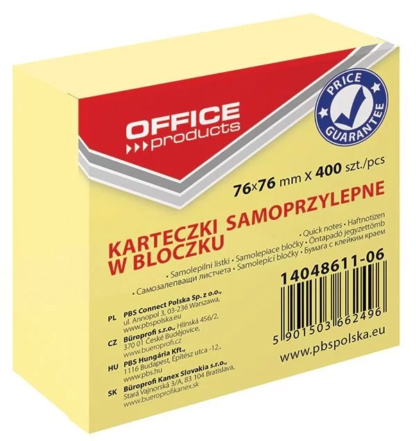 Bloczek Samoprzylepny 76x76 400k Żółty /Office Products