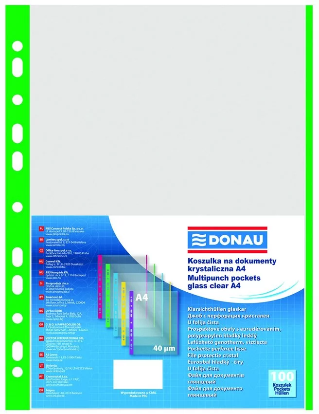 Koszulki A4 Groszkowe Brzeg Zielony A'100 /Donau