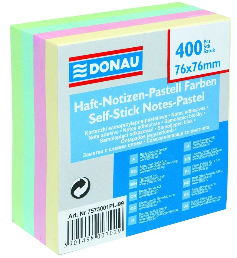 Bloczek Samoprzylepny 76x76 400k 4kol. Pastelowy /Donau